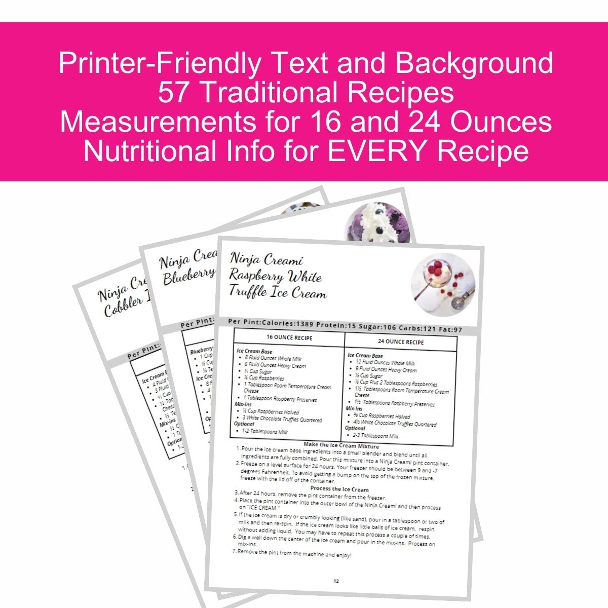 57 Traditional Ninja Creami recipes with step by step instructions.