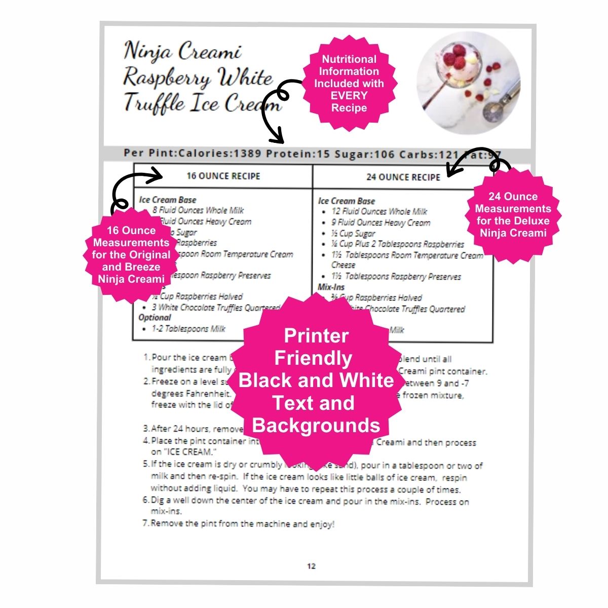 78 Printer Friendly Pages- Same great recipes but in a condensed version that can be printed at home. One page per recipe.